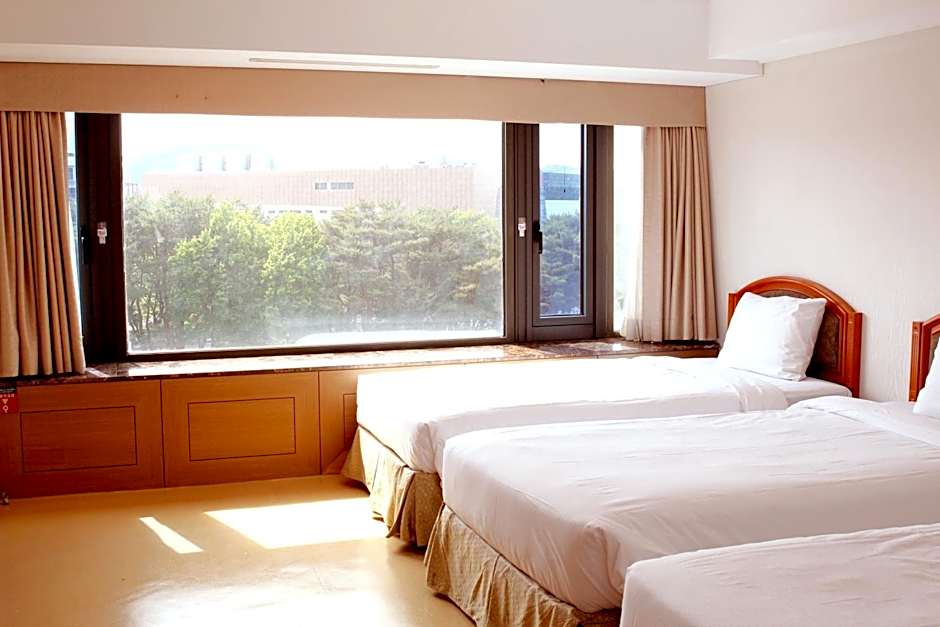 This room is fitted with two cots on Ondol, Korean heated flooring.The room comes with a flat-screen cable TV, electric kettle and a work desk.